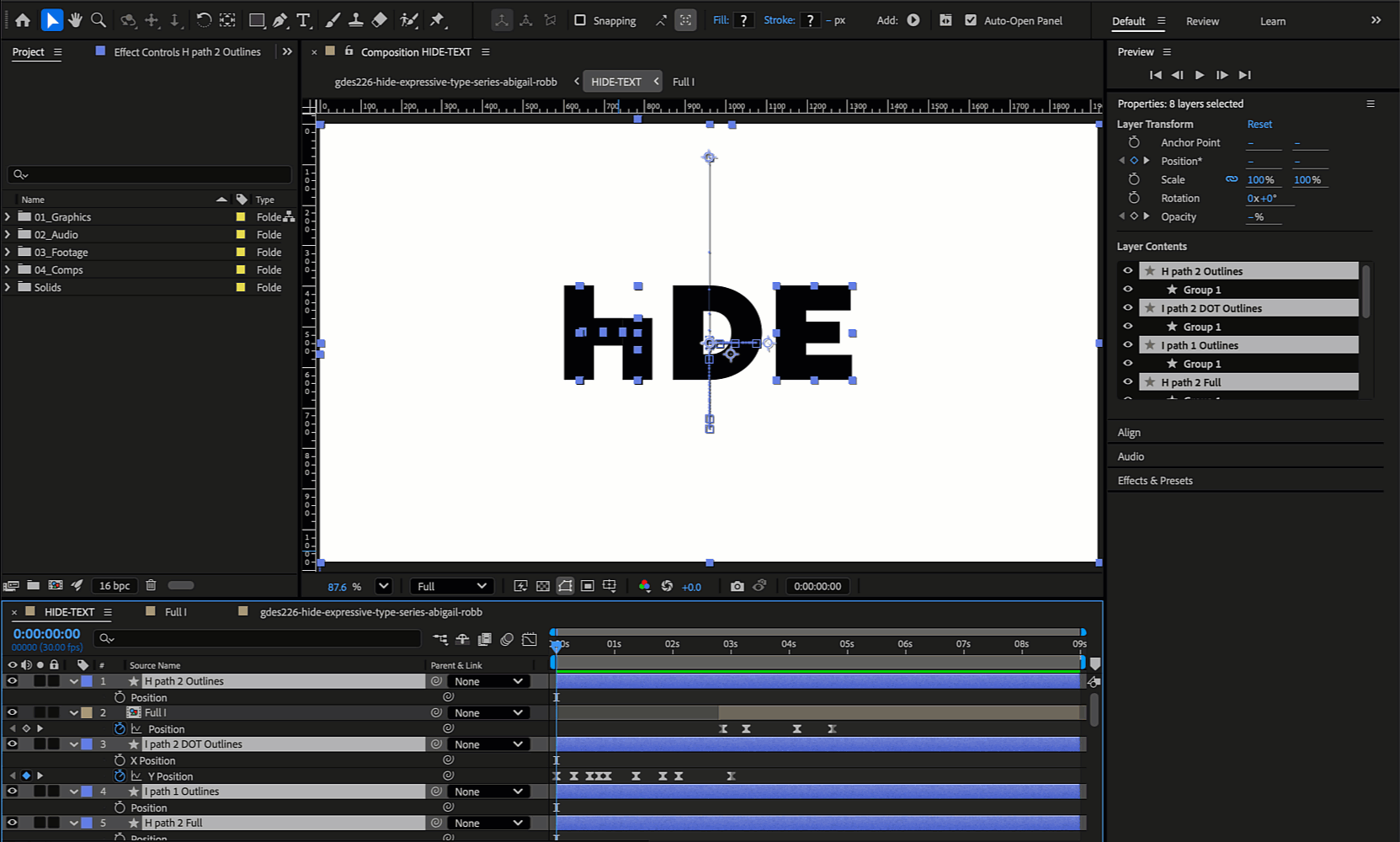 For this project, I created a logo animation for HIDE that visually represents the company’s core values of discovery, empowerment, and growth. I began by exploring typefaces, colors, and storyboarding the movement of the “I” to reflect a shy individual gradually stepping into the spotlight. Once the concept was solidified, I brought the animation to life in After Effects, carefully timing the movements to convey curiosity, confidence, and transformation.